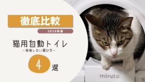 こまめな掃除で、キレイなトイレをキープするのは大変!!そんな方には猫用自動トイレがオススメです!猫用自動トイレについて、比較している「【2025年】猫用自動トイレおすすめ4選と後悔しない選び方を紹介」という記事もあるので、ぜひ合わせてご覧ください!