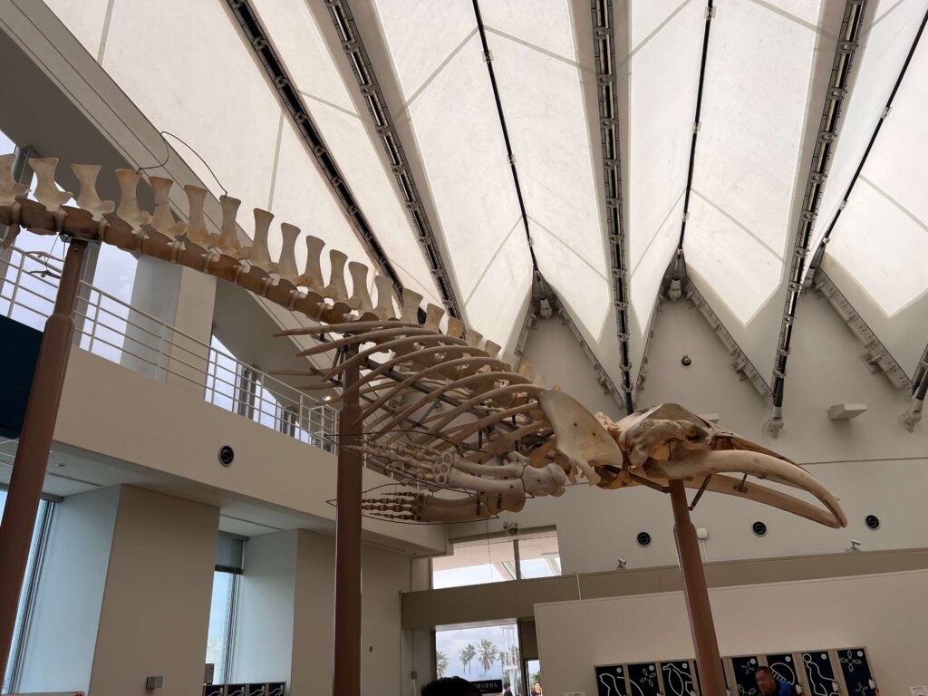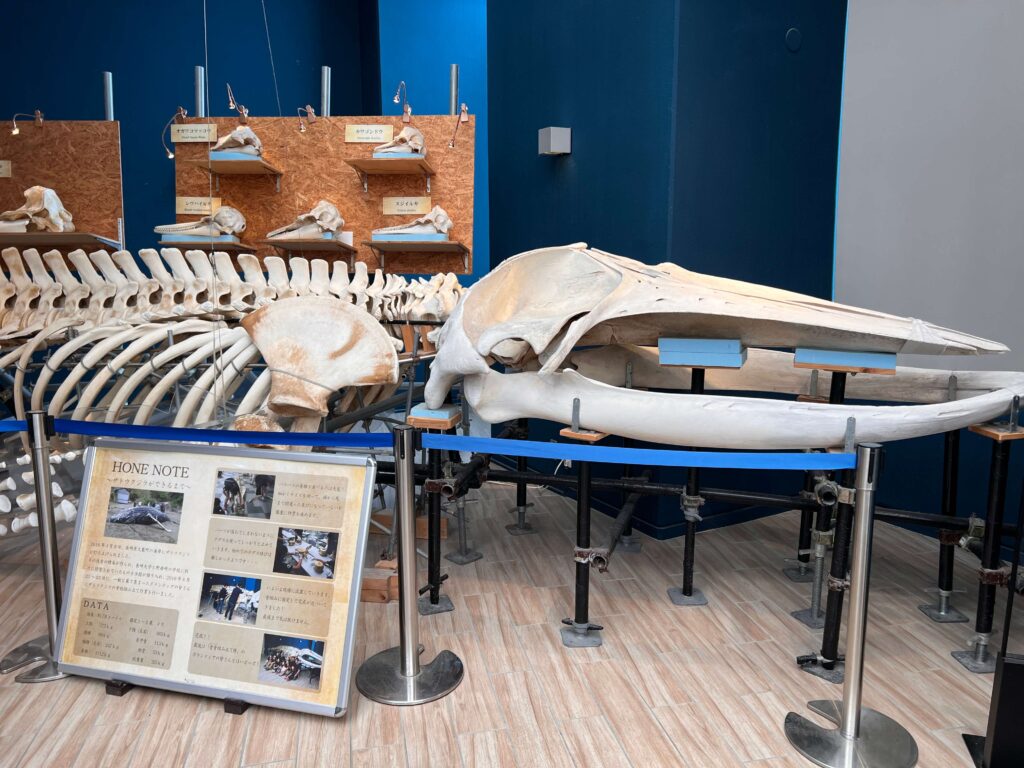 館内奥の「学習ゾーン」では、打ち上げられたクジラなどの骨格標本を展示しています。